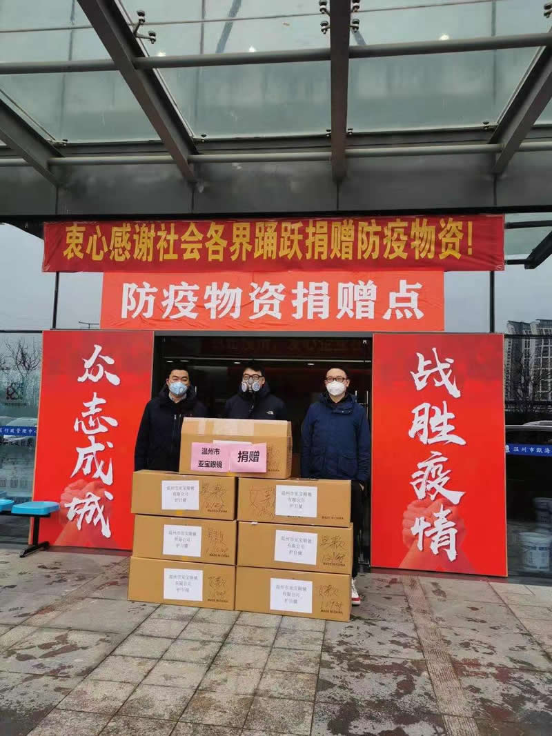 2020年2月22日上午9時30分,在甌海區(qū)委區(qū)政府組織領導下,在溫州(甌海)眼鏡小鎮(zhèn),亞寶眼鏡與行業(yè)伙伴企業(yè)共同捐贈一批護目鏡馳援武漢,溫漢攜手,同心共濟!希望這批護目鏡,能表達我們對抗疫一線醫(yī)務人員的敬意和支持。